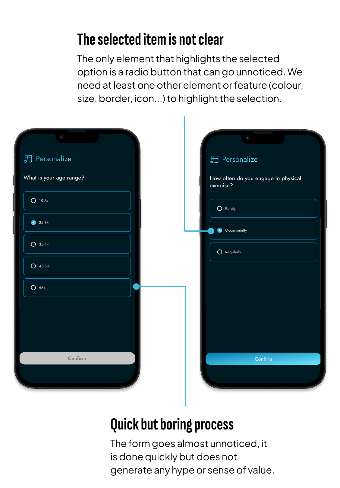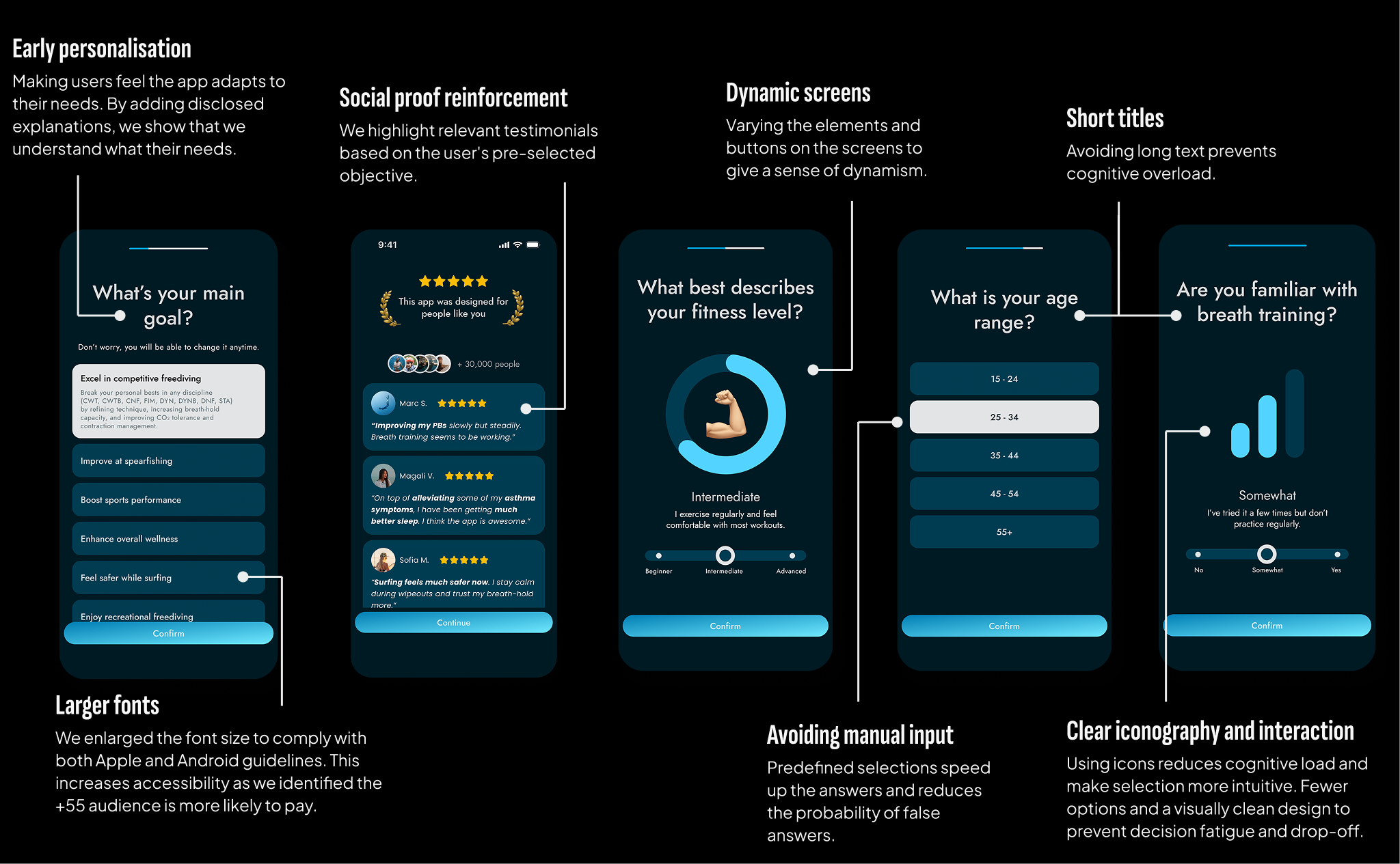 I analysed onboarding flows from dozens of apps. The goal was to identify common patterns, best practices, and potential pitfalls that could inform my decisions.