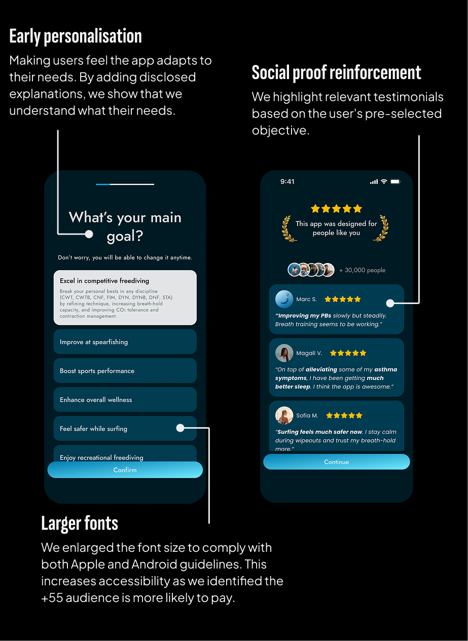 A/B testing showed 16.5% increase in free to trial conversion with the new onboarding screens, confirming that a more profesional look & feel also increase value perception.