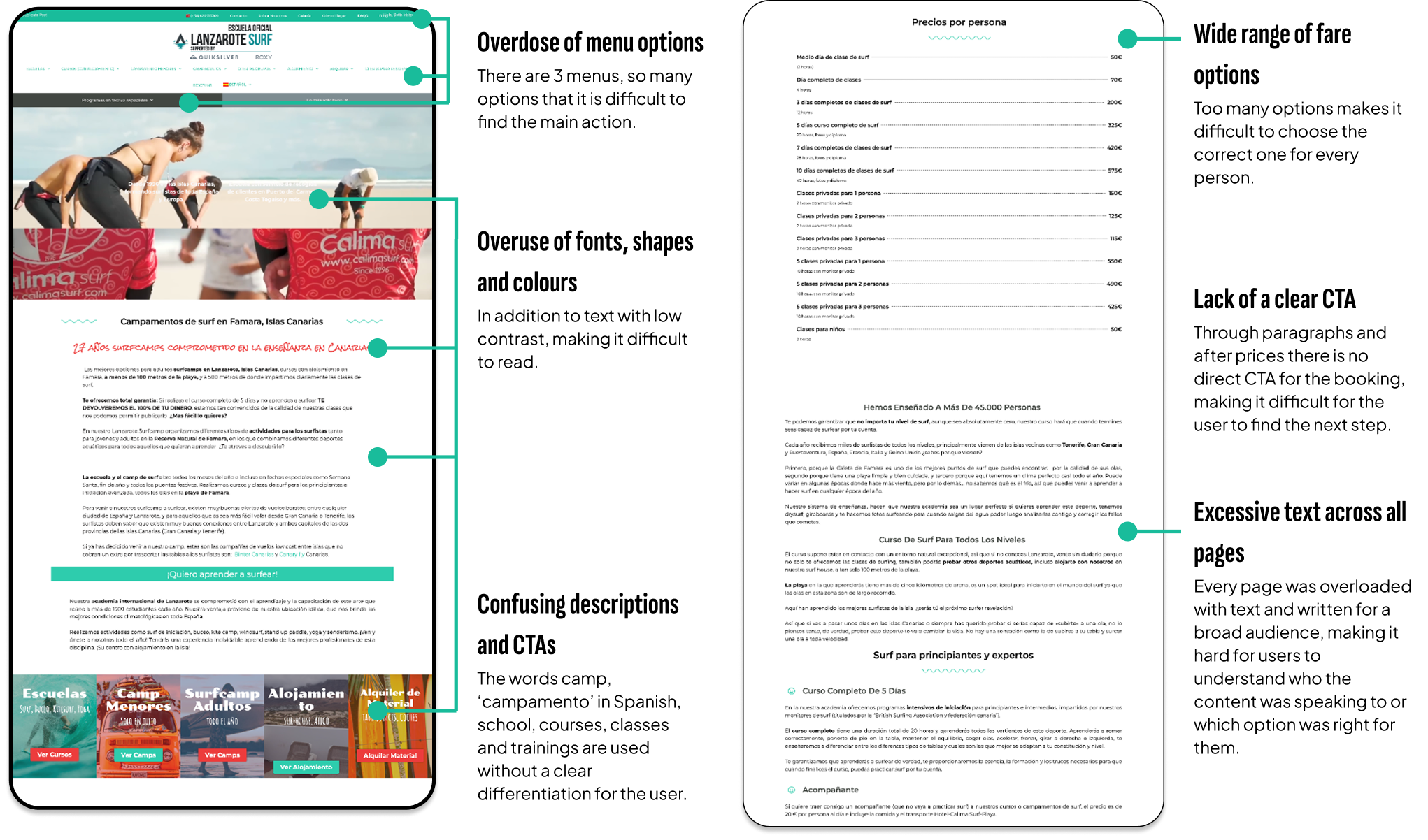 Lanzarote Surf, one of the most recognized surf schools in the Canary Islands, struggled with a cluttered, overwhelming website.